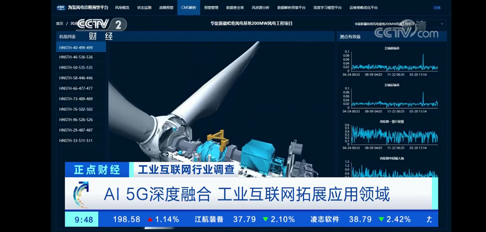 近日,在CCTV2播出的《正点财经》栏目中,央视再次将镜头对准中国船舶集团海装风电股份有限公司(以下简称“中国海装”),报道了中国海装在“5G+工业互联网”融合应用领域的创新实践。本次受到央视关注的“海装风电诊断预警平台”,同时入选了《中国工业互联网产业经济发展白皮书(2020年)》,白皮书由中国工业互联网研究院发布,旨在全景式展现我国工业互联网产业的总体发展现状。