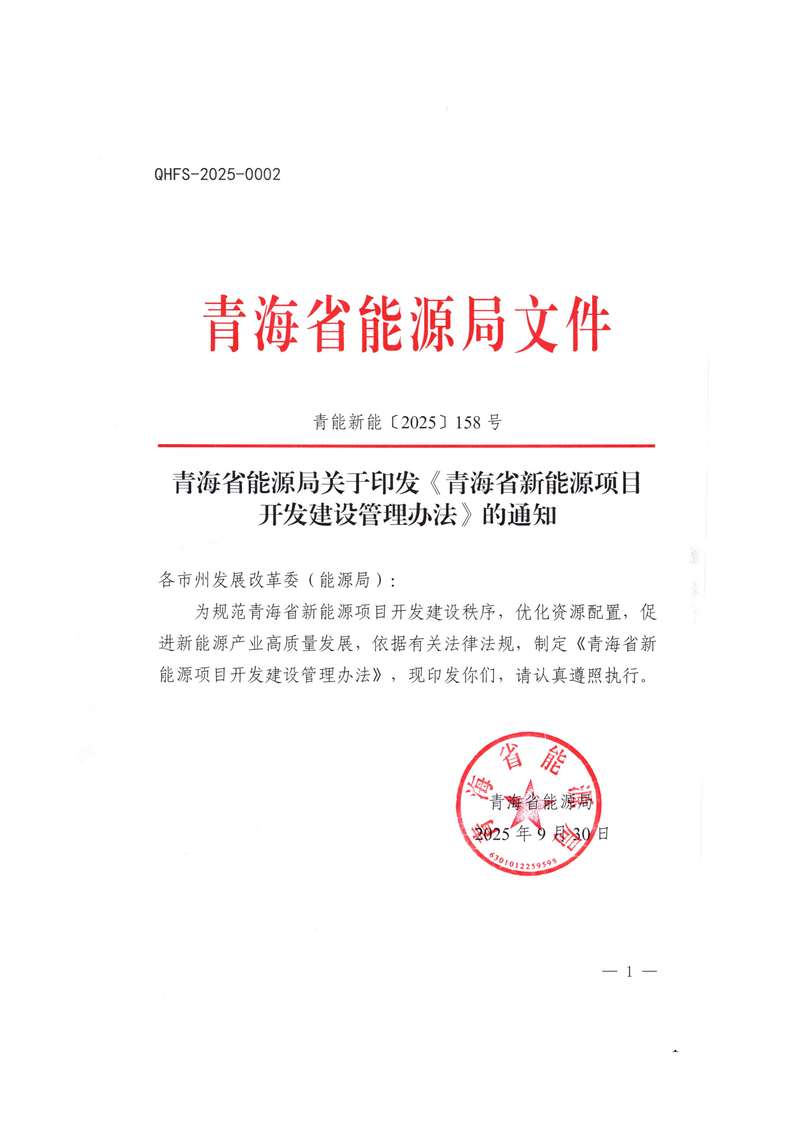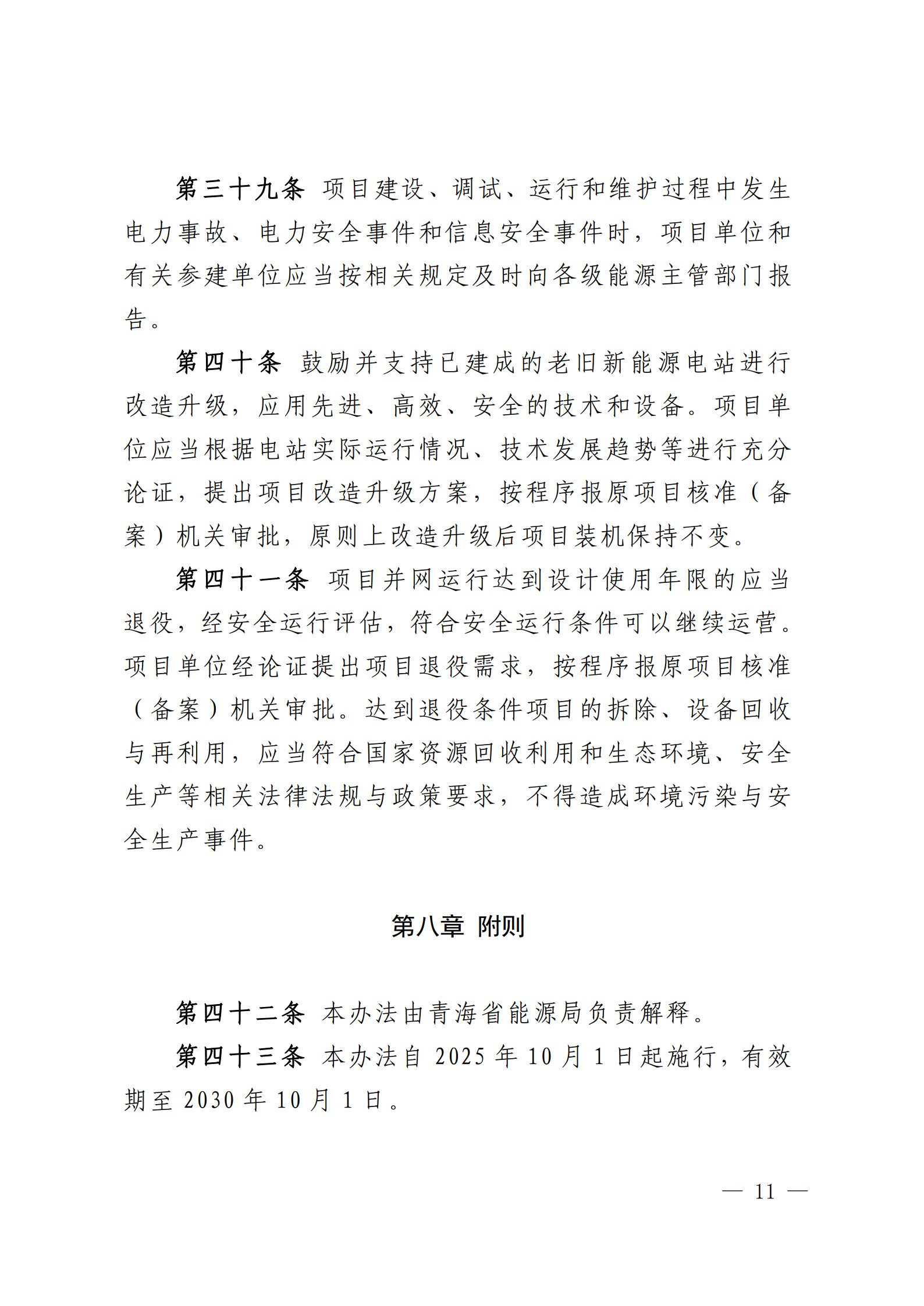 9月30日,青海省能源局印发《青海省新能源项目开发建设管理办法》,办法明确: