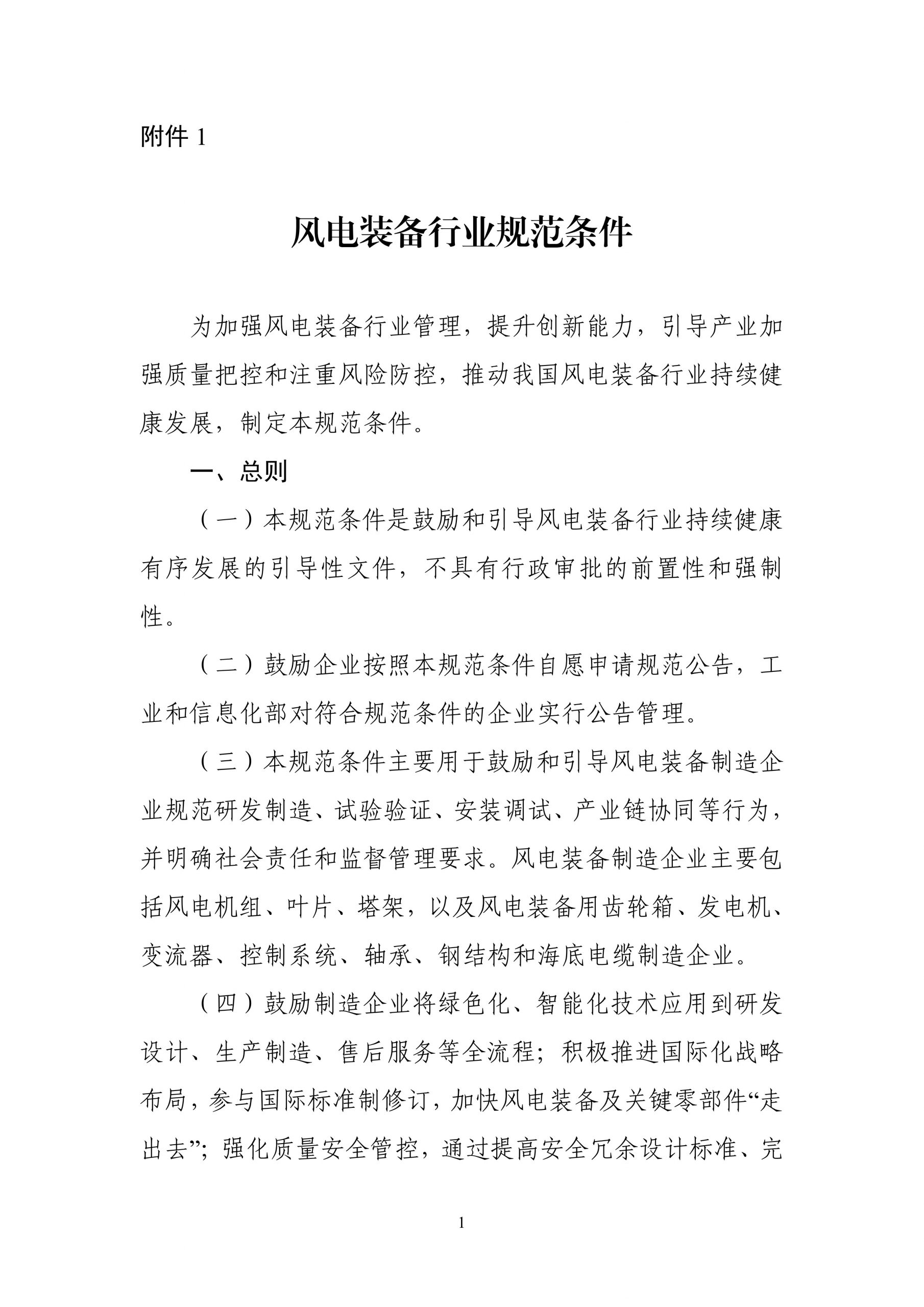 本规范条件是鼓励和引导风电装备行业持续健康有序发展的引导性文件,不具有行政审批的前置性和强制性。