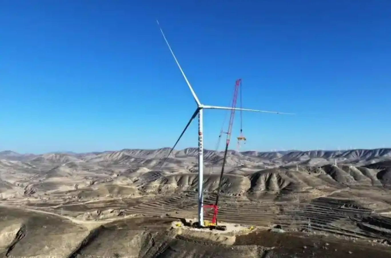 1月18日,龙源电力宁夏腾格里“沙戈荒”新能源基地海原100万千瓦风电项目首台风电机组完成并网,标志着宁夏单体容量最大风电项目进入大批量并网阶段。