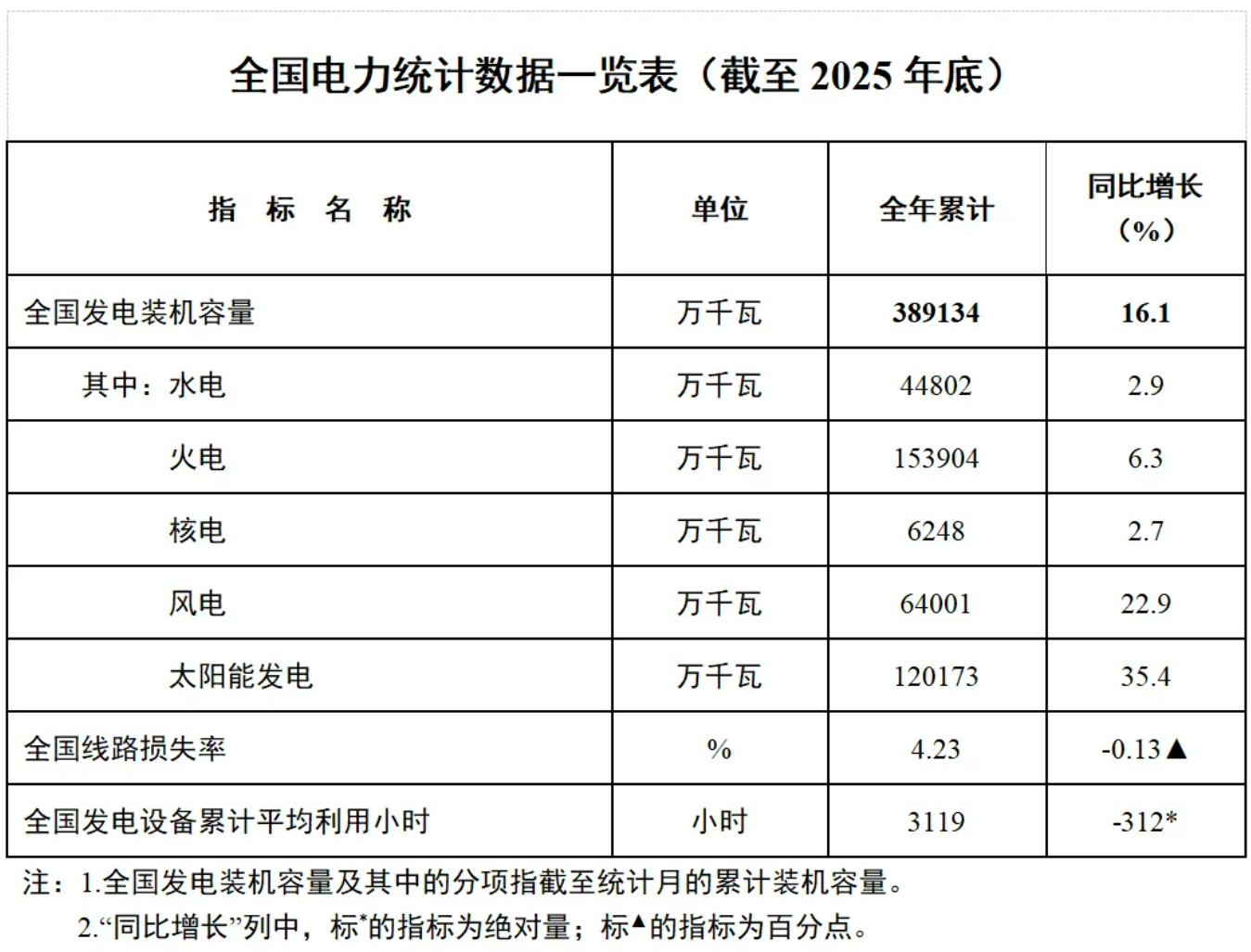 1月28日,国家能源局发布2025年全国电力工业统计数据。