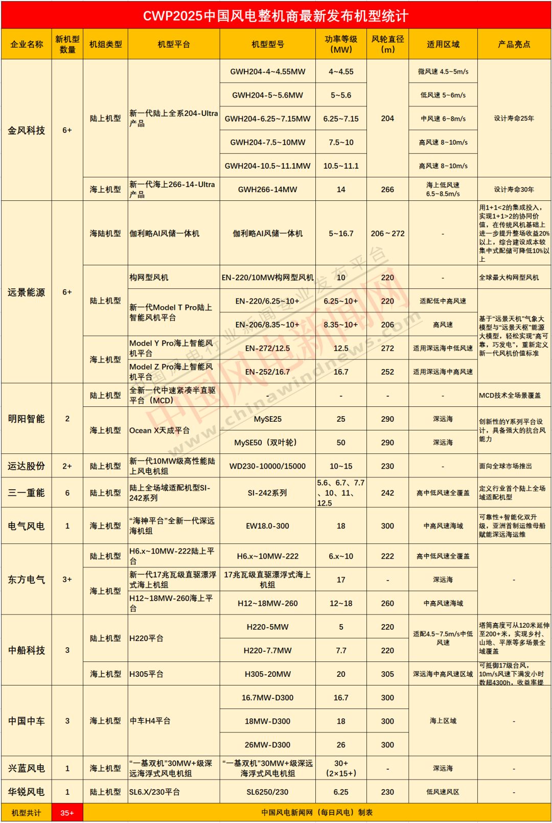 CWP2025 | 11家风电整机商发布35+款新机型!